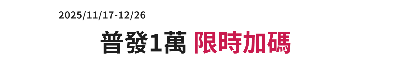 - 抽獎活動於2025/12/29進行抽獎並於HAPPY GO官網公告得獎名單,限量10名。