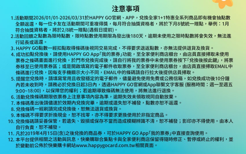 詳細請上HAPPY GO智慧財產權保護聲明如您有任何意見請至客服信箱留言或,或至HAPPY GO官網或App聯繫文字客服 (服務時間:週一至週五 9:00~18:00)。 鼎鼎聯合行銷(股)公司版權所有Copyright (C) 2026 All Right Reserved By DDIM │取消訂閱│ |