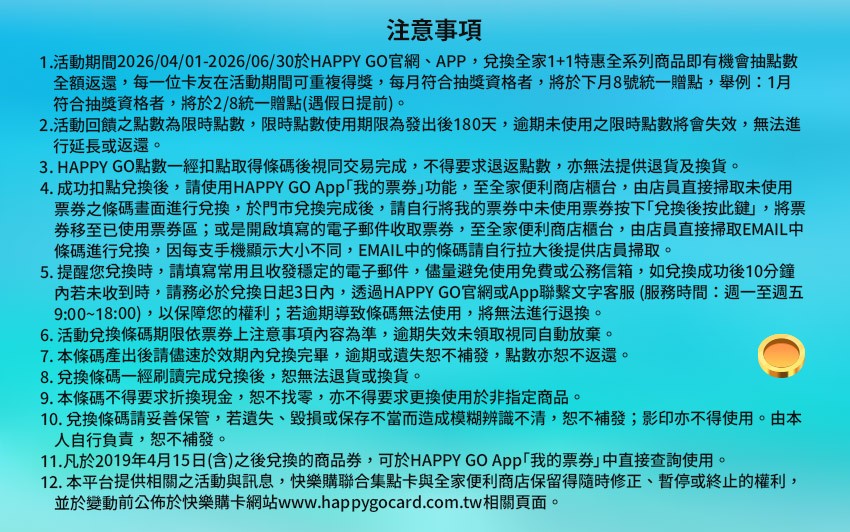 詳細請上HAPPY GO智慧財產權保護聲明如您有任何意見請至客服信箱留言或,或至HAPPY GO官網或App聯繫文字客服 (服務時間:週一至週五 9:00~18:00)。 鼎鼎聯合行銷(股)公司版權所有Copyright (C) 2026 All Right Reserved By DDIM │取消訂閱│ |